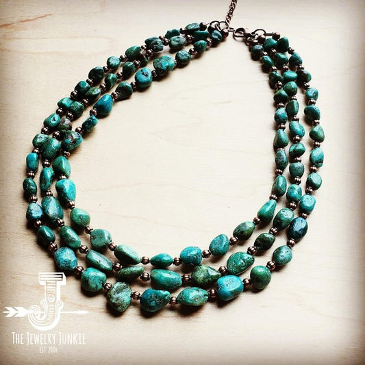 Triple Strand Turquoise & Copper Collar Necklace