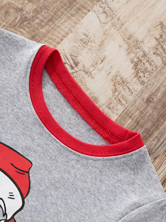 Christmas Santa Print Round Neck Top and Shorts Lounge Set